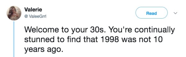Time comes for us all, these tweets prove that, and while 30 is still considered young, it sure doesn’t feel anywhere like 20. Youth is wasted on the young and you don’t appreciate what you have until it’s gone, but it’s all about making the change as gracefully as possible. Transitioning from your 20s to your 30s means making some crucial adjustments. Adjustments like making a some kind of noise when you stand up, consistently choosing comfort over style, and accepting that a hangover now means losing a whole day.